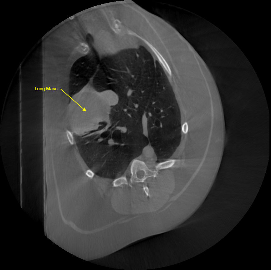 Chest CT Demonstrating masses in the lungs.